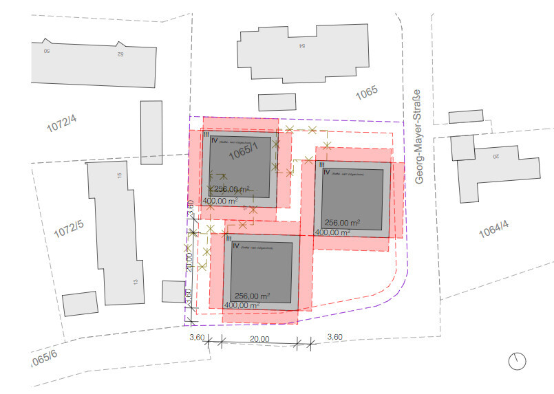 Bebauung ist nach mündlicher Vorsprache eines Planungsbüros beim Bauamt möglich mit drei bis vier Mehrfamilienhäusern.
