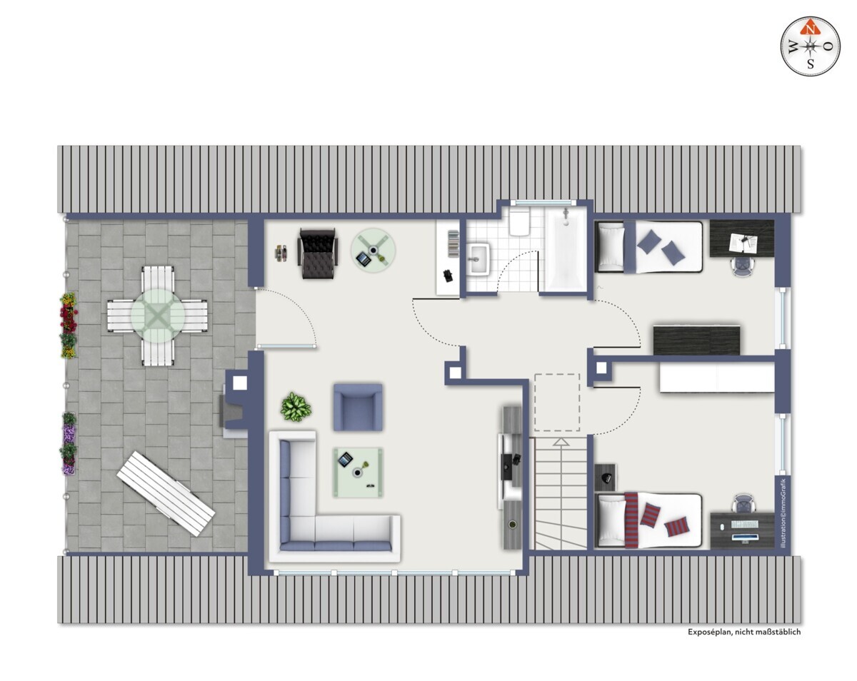 • Bäder: zwei Duschbäder im Erdgeschoss sowie ein weiteres Bad im Obergeschoss