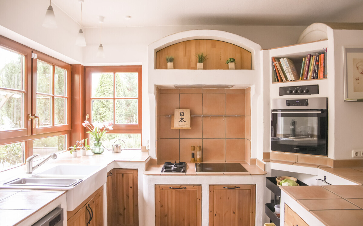 - hochwertige, gemauerte Landhausküche mit Gas- und Elektroherd